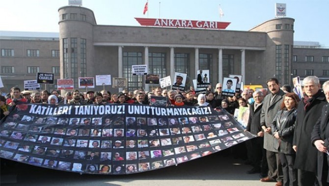 Ankara Katliamı’nın dördüncü ayında Ankara Tren Garı önünde yapılan anma, patlamanın yaşandığı saat olan 10.04’te başladı. Katliamda yaşamını yitirenlerin ailelerinin yanı sıra anmada KESK Eş Genel Başkanları Lami Özgen ve Şaziye Köse, DİSK Genel Başkanı Kani Beko, TMMOB Yönetim Kurulu Başkanı Mehmet Soğancı, TTB Merkez Konseyi Başkanı Bayazıt İlhan, yurttaşlar ile çok sayıda demokratik kitle örgütü, siyasi parti temsilcileri ve milletvekilleri de bulundu.