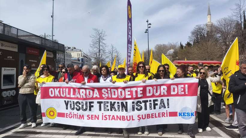 Öğretmenler ülke genelinde iş bırakırken Milli Eğitim Bakanı Yusuf Tekin’i istifaya çağıran Eğitim Sen üyeleri, Beyazıt Meydanı’ndan İstanbul İl Milli Eğitim Müdürlüğü’ne yürüyüş gerçekleştirdi.
