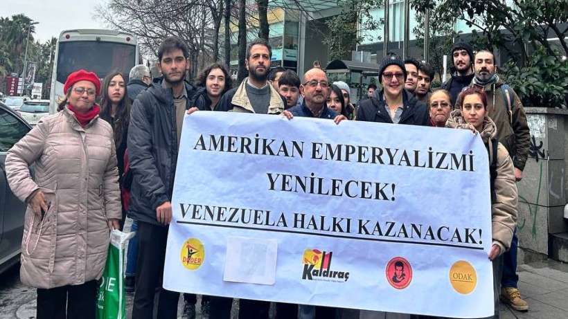 Venezuela’ya ABD tarafından gerçekleştirilen saldırının birinci ayında, DKDER, Kaldıraç Hareketi, Mücadele Birliği Platformu ve ODAK temsilcileri, İstanbul Teşvikiye’de bulunan Venezuela Başkonsolosluğuna dayanışma ziyaretinde bulundu ve konsolosluk önünde ABD protesto edildi.