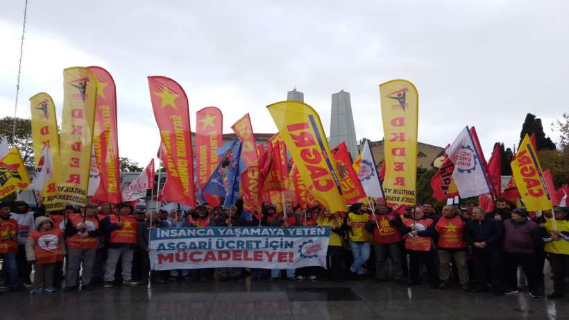 "İnsanca yaşamaya yeten asgari ücret için mücadeleye!" pankartının açıldığı eylemde, açılışta milyonlarca işçi emekçiyi ilgilendiren ücret tartışmalarında masaya işçilerin iradesinin olmadığı, insanca bir yaşam için birlikte mücadelenin önemi vurgulandı.